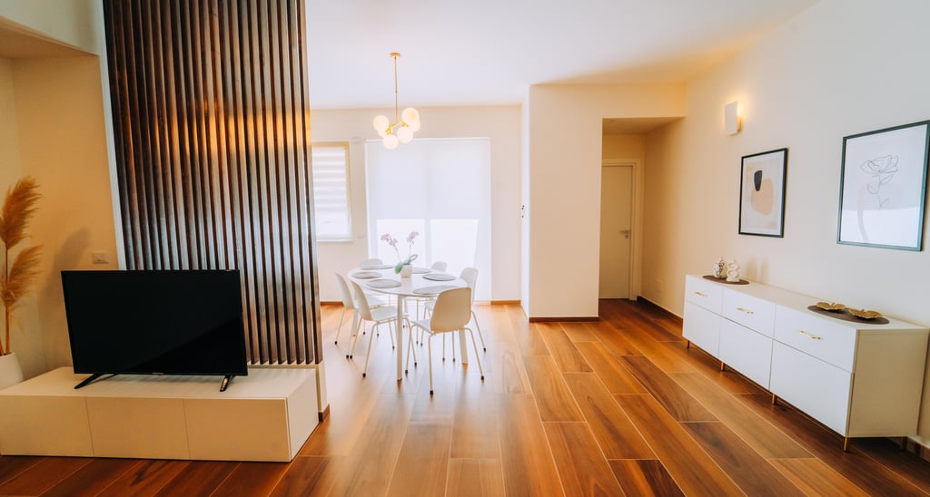 L'Appartamento di 95 mt quadrati è elegante e moderno, caratterizzato da 2 ampie e luminose camere da letto, realizzate con materiali di alta qualità che conferiscono un tocco di classe e comfort. Il cuore dell'abitazione è un grande open space che unisce armoniosamente il soggiorno e la cucina, creando un ambiente ideale per vivere e intrattenere.