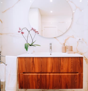 Il bagno, rifinito con materiali di pregio, è altrettanto ampio e luminoso, offrendo un'area ben progettata per il massimo del relax.